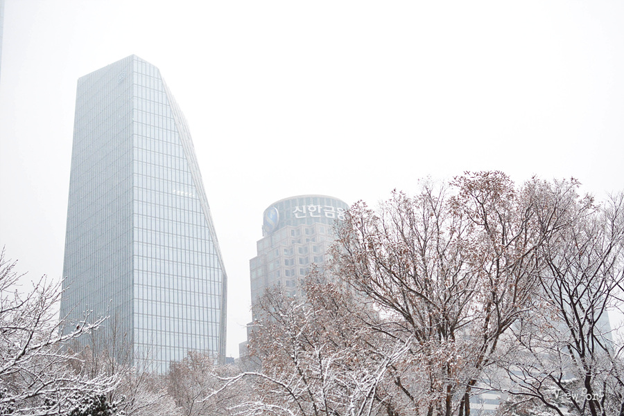 이런 빌딩 숲 사이로 이렇게 예쁜 설경을 볼 수 있는 것도 참 즐거운 일입니다.