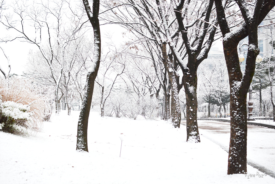 지난주에도 잠깐 눈 소식이 있긴 했지만, 아침에 내리면서 바로 녹아서 눈이 온지도 모르는 사람들도 많았지만, 오늘은 포근해진 오후까지는 눈이 쌓은 곳을 볼 수 있었습니다. 역시 겨울엔 하얀 눈이죠