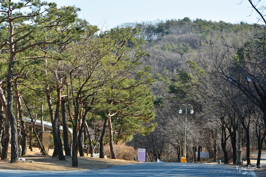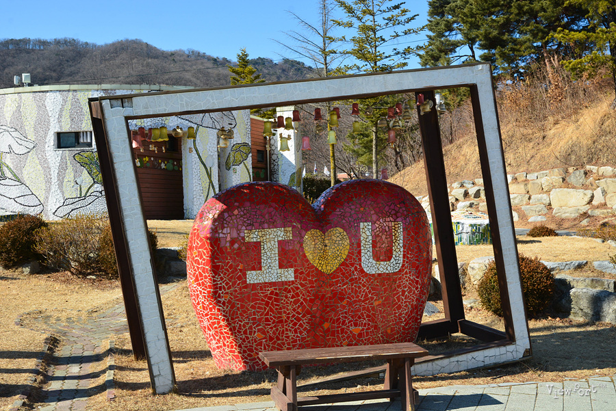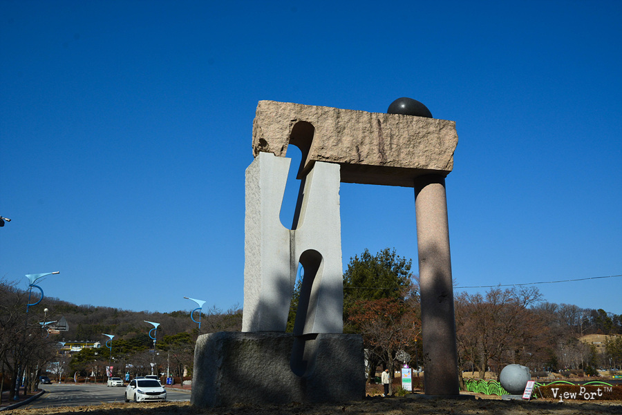 서울에서 차로 약 한시간여면 도착할 수 있는 거리입니다. 공원입구 호수가 근처 주차장도 있고, 공원 맨 꼭대기에도 주차장이 있습니다. 주차장 바로 앞에 있는 나무모양의 풍경 작품이 작은 바람에도 예쁜 소리를 내어 주네요