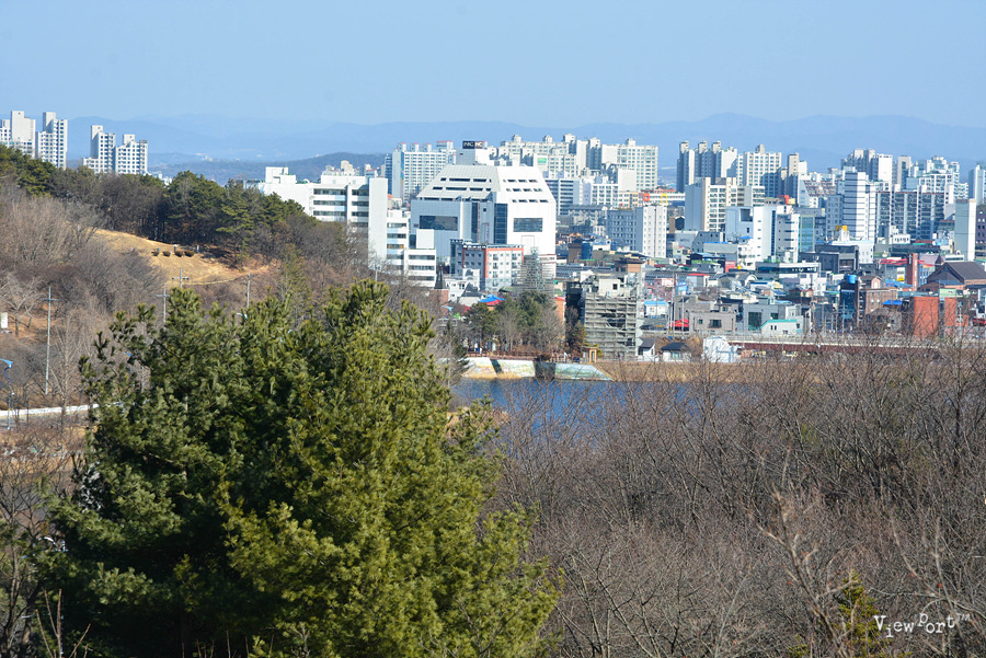 공원 맨 꼭대기 주차장 바로 앞이예요. 저 아래로 설봉공원 호수와 이천시 모습이 내려다 보입니다. 마침 날씨도 무척 좋았네요..