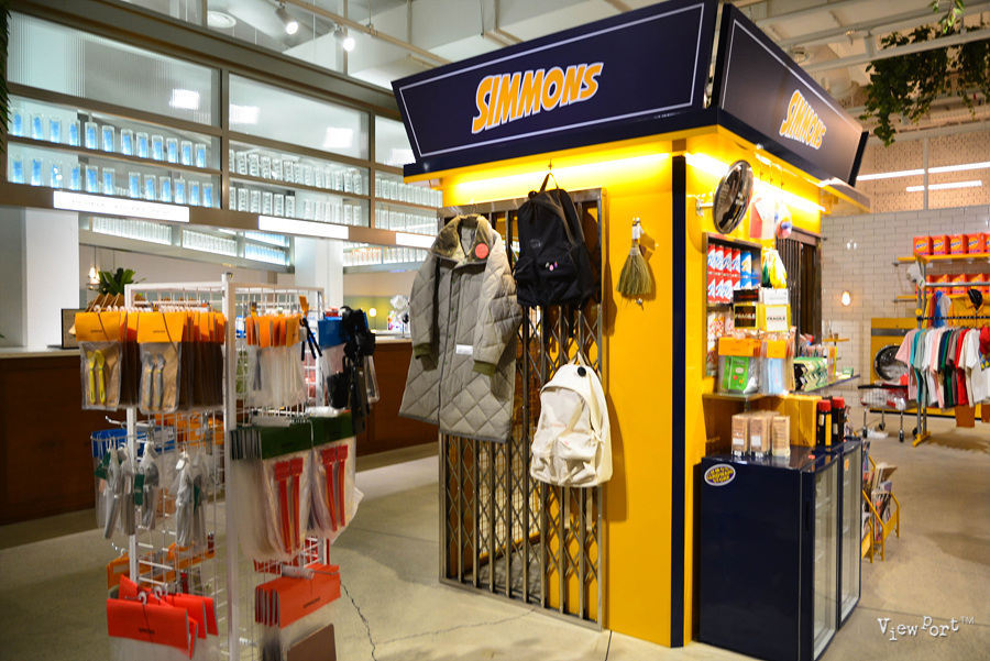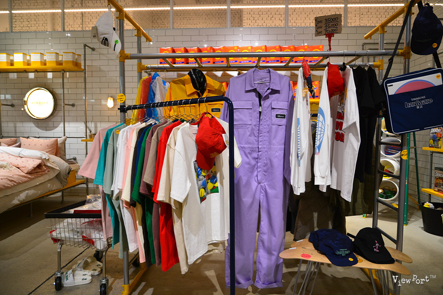 이곳에서는 여기 기념품 매장이 사실 제일 인기있는 곳이죠. 미국 영화에서 나오는 작업복이라던가 모자, 티셔츠, 그리고 시몬스 로고가 투박하게 박힌 기념품들이 판매되고 있었어요