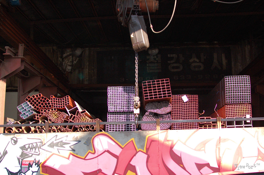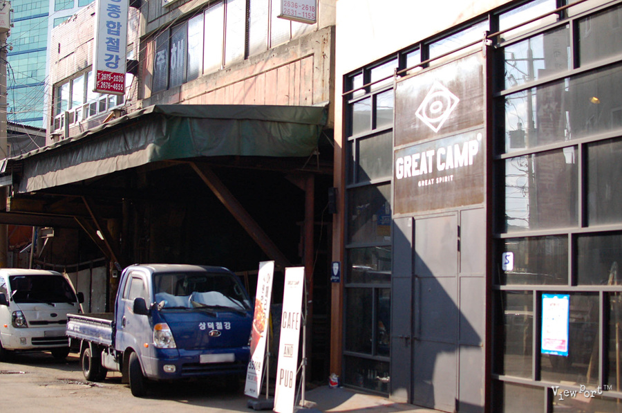 철공소가 이어지는 중간에 보이는 샵, 이 지역의 느낌을 잘 살린것 같아요