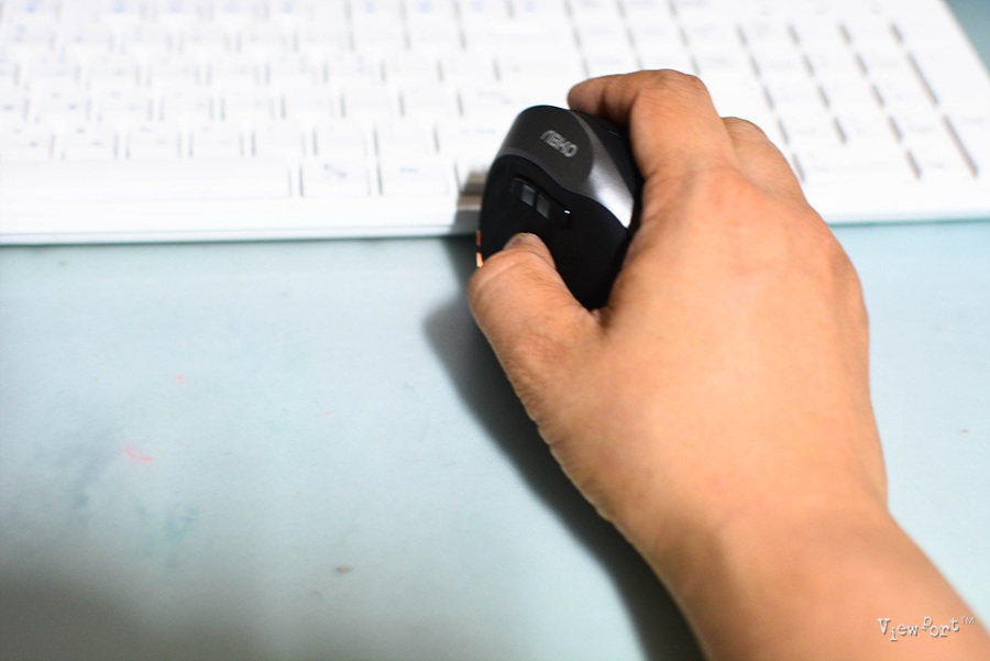 먼저 버티컬 마우스를 잡는 모습을 올려 보겠습니다. 일반 마우스를 쓰던 것과 느낌이 좀 다른데요, 일단 손목이 꺽이지 않는게 바로 느껴집니다