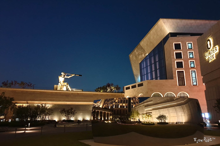 인천 영종도 파라다이스시티의 저녁시간, 호텔 주변 정원과 각종 공간들이 갖고 있는 예쁜 야경은 꼭 한번 구경해볼만 합니다. 10만평대의 부지에 복합리조트 형태로 구성된 주변 시설들은 저녁이 되면 예쁜 조명들이 빛을 내면서 낮과는 전혀 다른 멋진 뷰를 보여줍니다