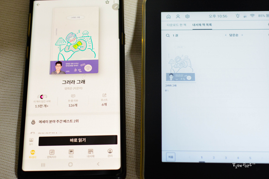 블루투스로 페어링한 휴대폰에서 읽고 싶은 책을 받았습니다. 바로 크레마 카르타G에도 책 한권이 들어왔어요