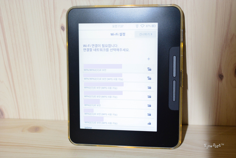 기기는 구입당시 초기화 되어 있어서, 처음부터 다시 세팅이 필요했습니다. 먼저 Wi-Fi 설정을 해주구요...