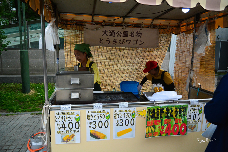 근데, 여기 공원에 앉아 있는 사람들 마다 하나씩 손에 들고 있는게 있더라구요. 바로 삿포로의 명물이라는 구운 옥수수랍니다