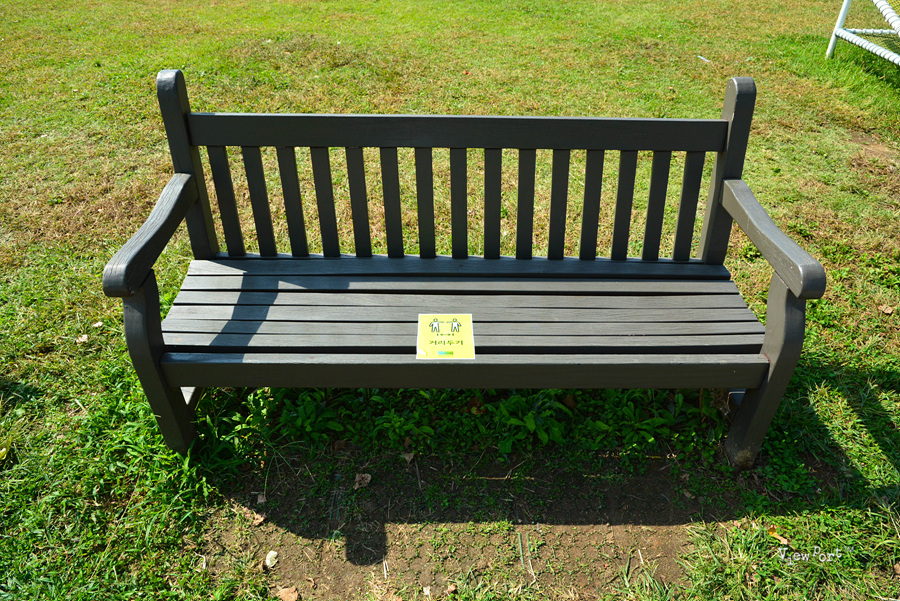 공원 중간 중간 벤치며 쉴 수 있는 여러 시설물들이 있는데, 빨리 코로나가 종식되서 저 거리두기 스티커가 없어지는 날이 빨리 왔으면 좋겠네요