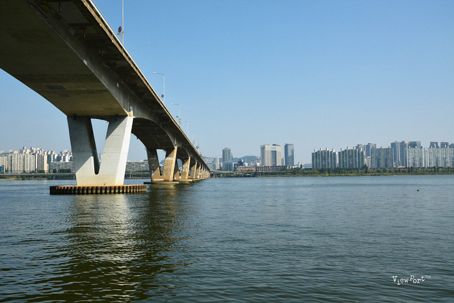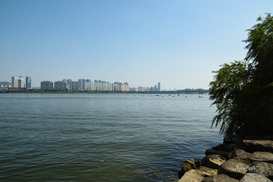 양쪽의 푸른 녹지를 끼고 쭉 내려가면 바로 시원한 한강이 보입니다.