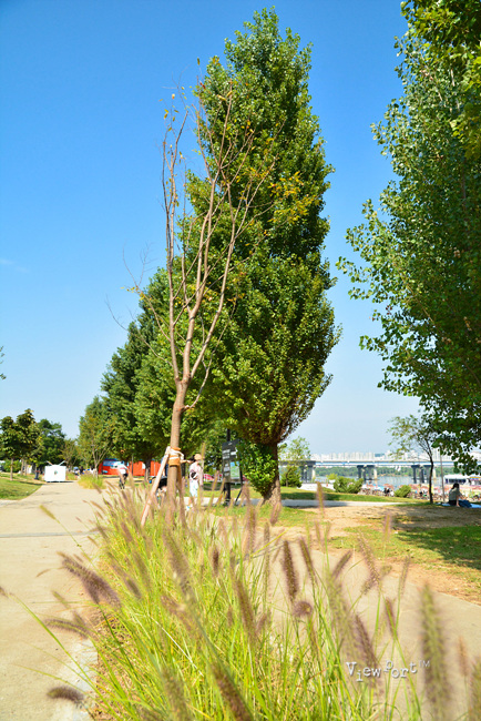 한강공원은 이렇게 파란 잔디밭과 나무 그늘들이 많아 아침 일찍 부터 하루를 즐기려 나오신 분들이 꽤 많습니다