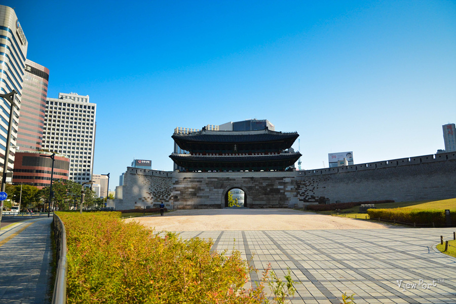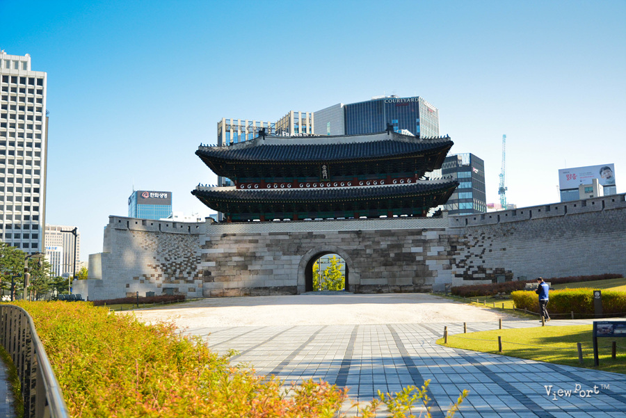 남대문로와 태평로가 이어지는 오거리의 중간쯤에 섬처럼 떨어져 있는 숭례문으로 가기위해 몇차례 횡단보도를 건너야 합니다