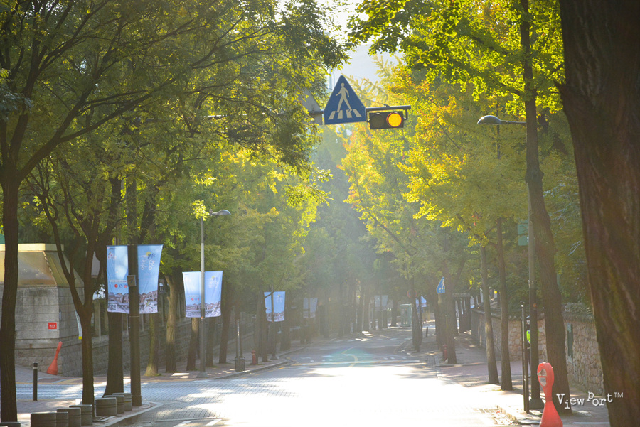창덕여중부터 이화여고를 거쳐 정동 제일교회까지 이어지는 정동길 내내 예스런 돌담길이 이어지고, 좁은 인도를 따라 노란 빛이 스며들기 시작한 은행 나무들이 늘어서 있습니다