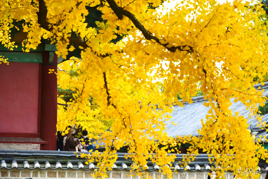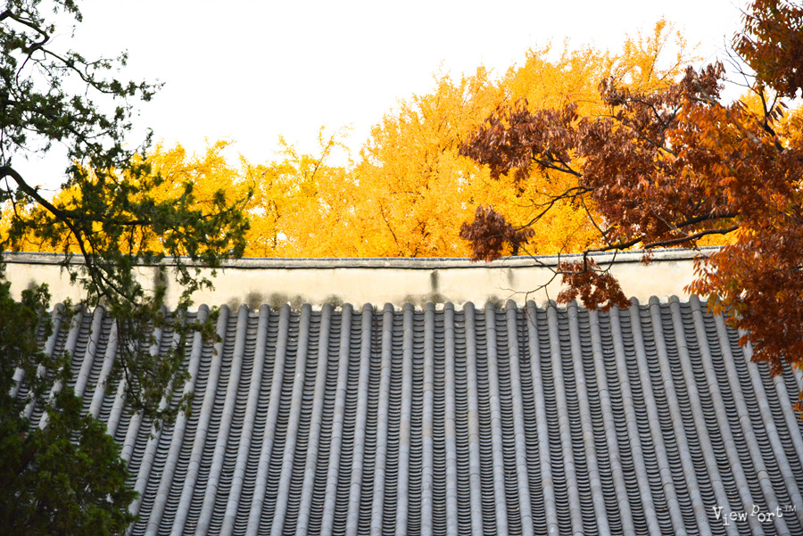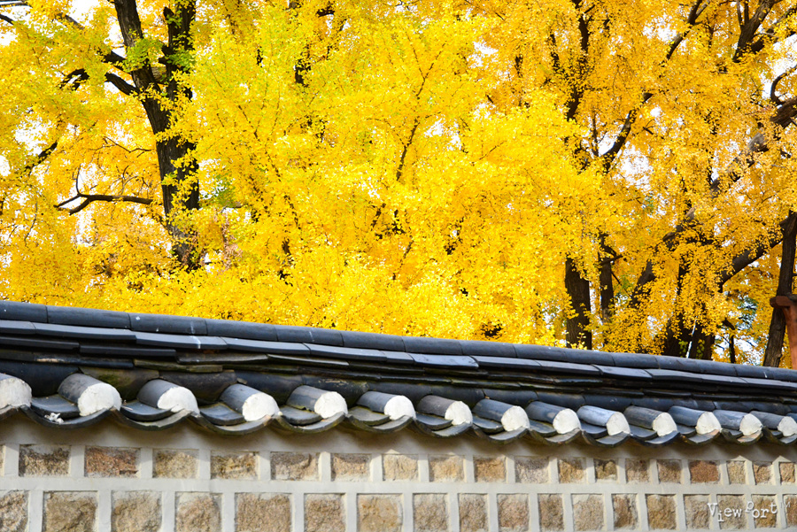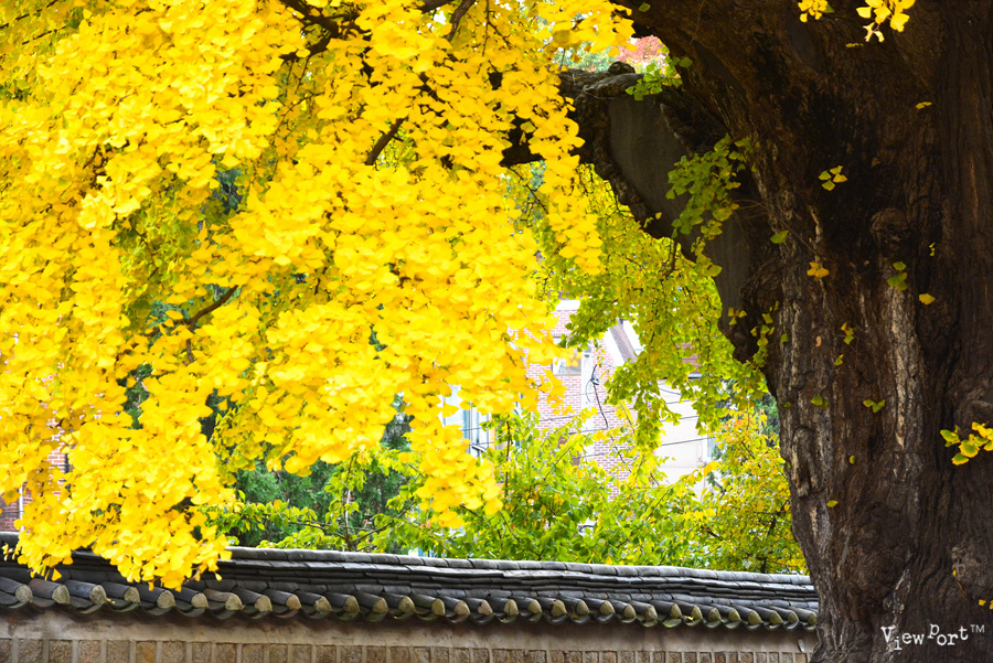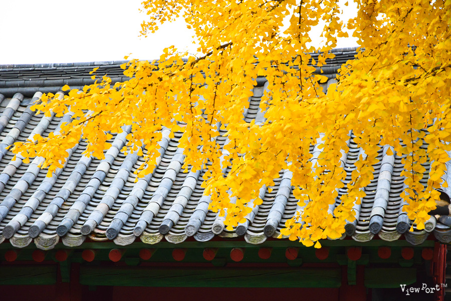 고즈넉한 건물과 붉은 색 벽과 노란 은행 잎이 너무나 예쁘게 잘 어울립니다.
