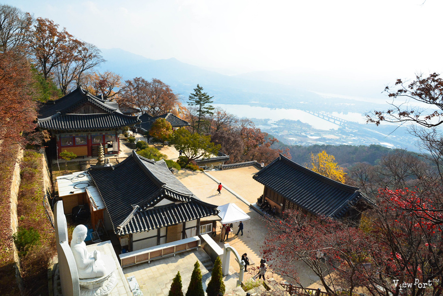 특히 산사의 나즈막한 담장 너머로 보이는 남한강과 북한강이 만나는 고즈넉한 풍경은 정말 아름답습니다.