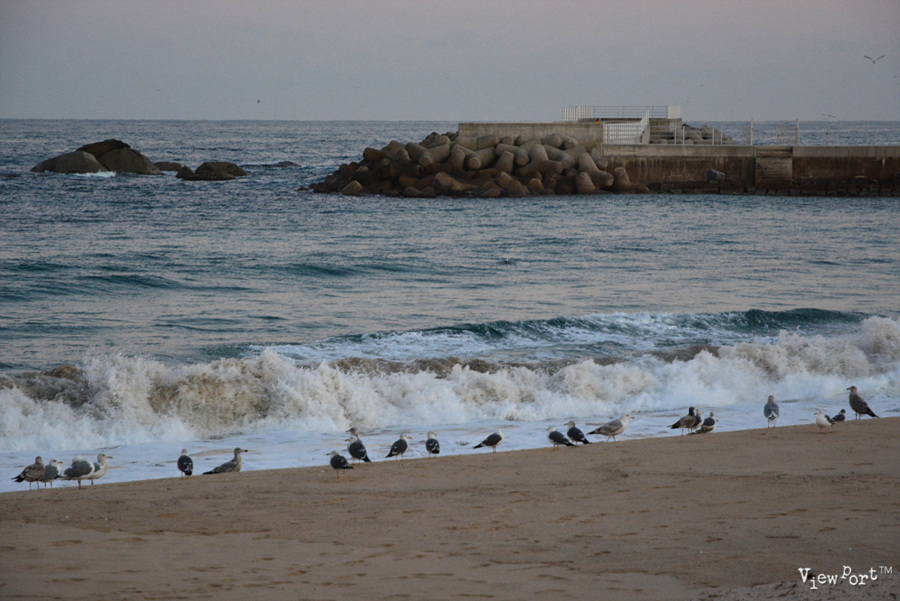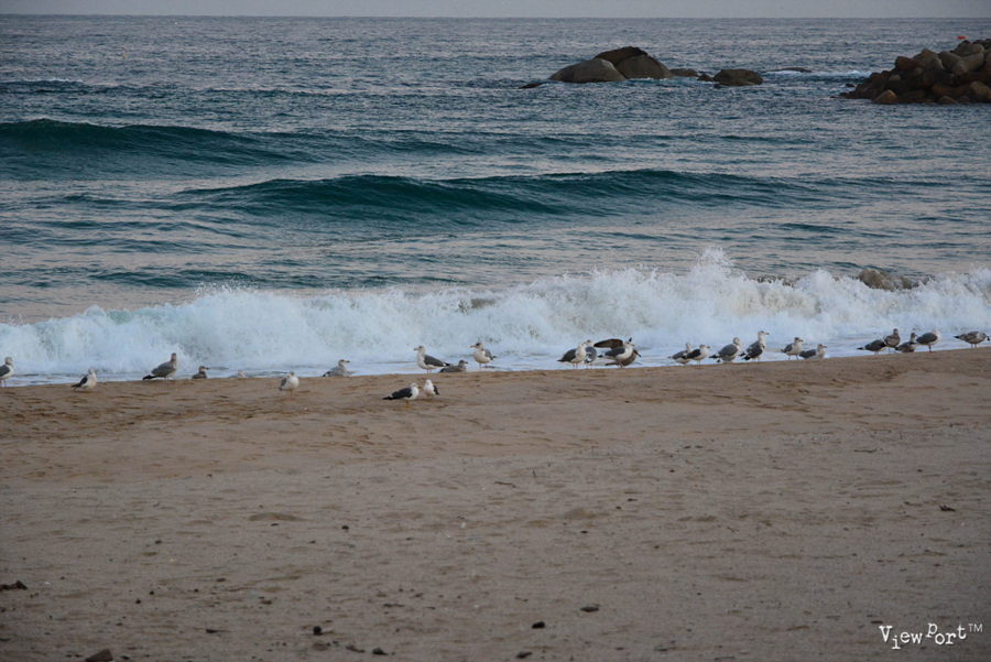 해지는 시간이 되자, 갈매기들이 모래사장에 내려 앉아 하루를 마무리 하나 봅니다. 백사장이 갈매기로 가득해졌읍니다