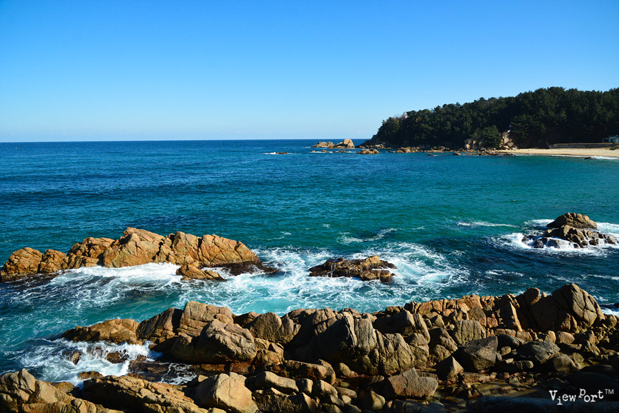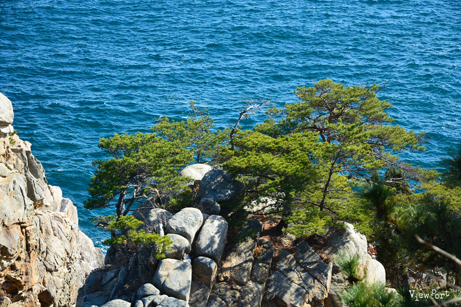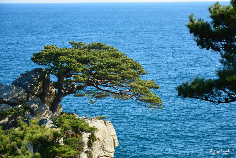 동해바다 특유의 짙푸른 색감과 파란 하늘사이에 푸른 소나무 하나가 너무나 멋진 곳입니다