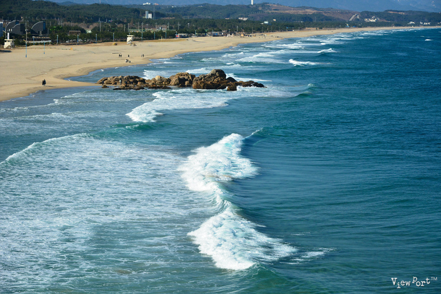 전망대에서 보니, 정말 엄청나게 큰 파도가 실감나게 보입니다. 앞에 파도와 해변에 있는 사람의 크기를 비교해 보면 파도가 얼마나 큰지 느껴지실 거예요.