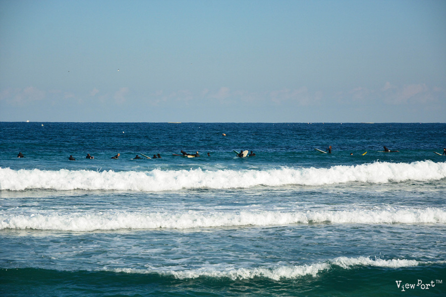 막 밀려드는 파도를 헤치고 파도를 맞으러 가는 서퍼도 있고, 마땅한 파도를 기다리는 서퍼들이 나란히 대기하고 있어요
