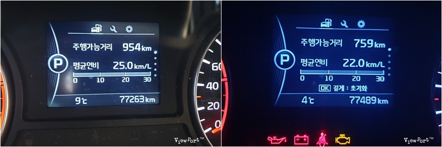 위는 얼마전 양양으로 갈때 트립컴퓨터에 찍힌 연비입니다. 특히 고속도로에서 디젤 1.7 + DCT 조합의 퍼포먼스가 뛰어난데요, 왼쪽은 홍천휴게소에서 가득주유하고 하조대까지 갈때까지의 연비로 25KM/L 수준이 나왔습니다. 물론 차가 없는 고속도로에 내리막길이 많은 이점도 있었고, 보통 고속도로에서 100km/H 로 주행시 약 20Km/L 수준의 연비가 나옵니다. 오른쪽은 양리단길에서 서울까지 오는 구간의 연비였는데, 중간 중간 차가 막혀도 꾸준한 수준 (22Km/L)의 연비가 나왔습니다. 단순 디젤엔진의 성능외에도 DCT 의 동력전달 효율이 연비 상승을 이끌어 냈습니다