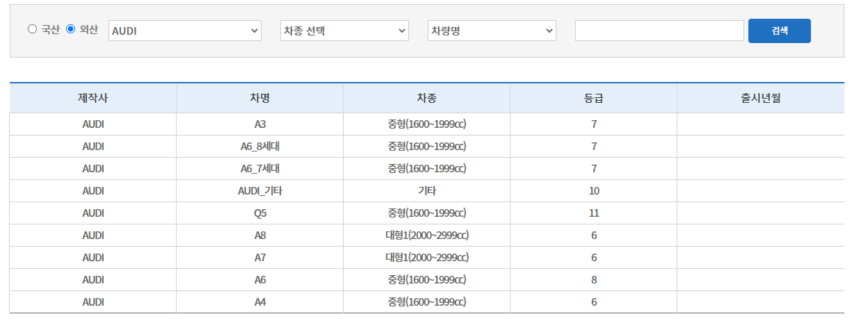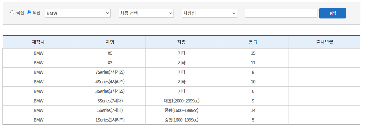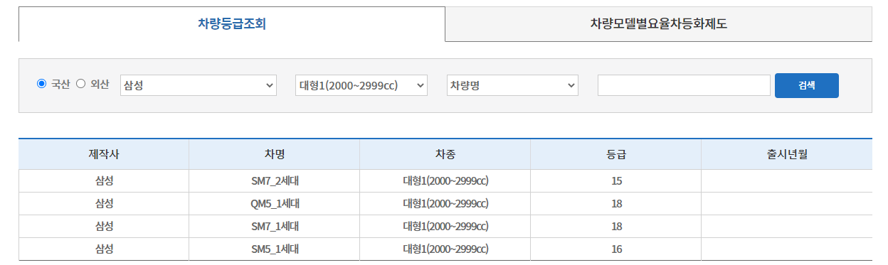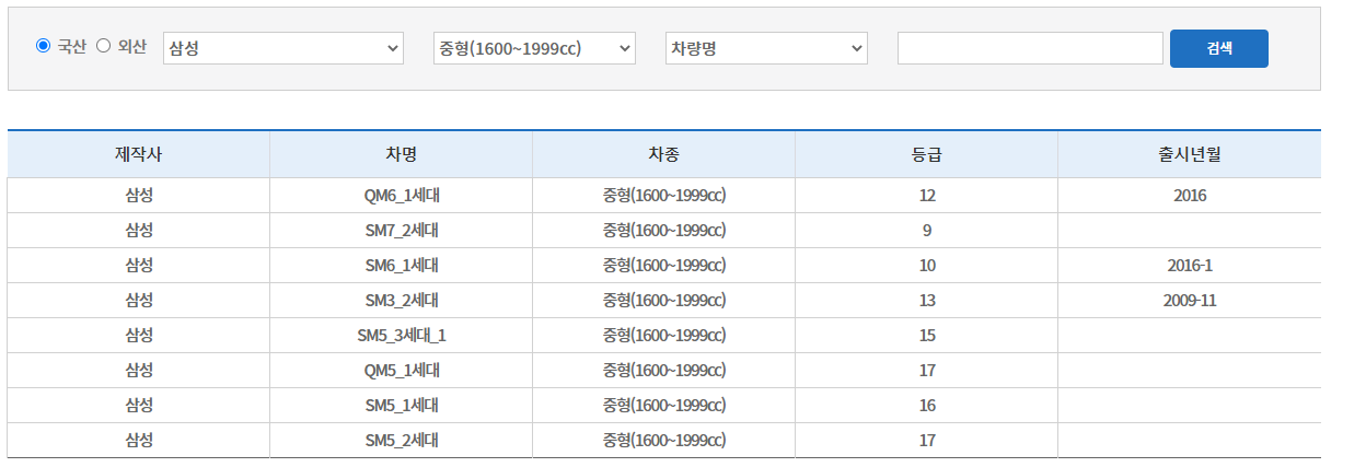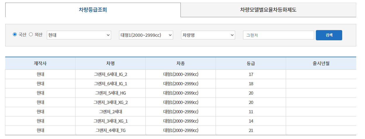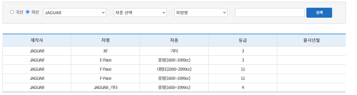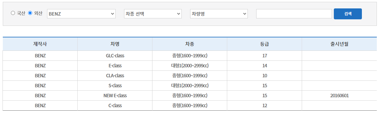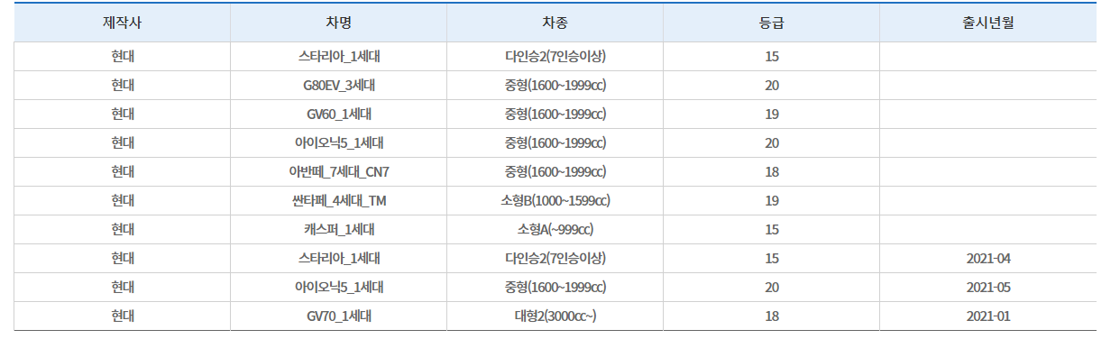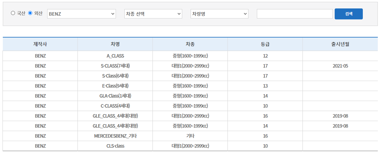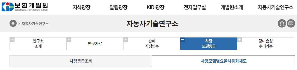 보험개발원 > 자동차기술연구소 > 차량 모델등급 > 차량등급조회