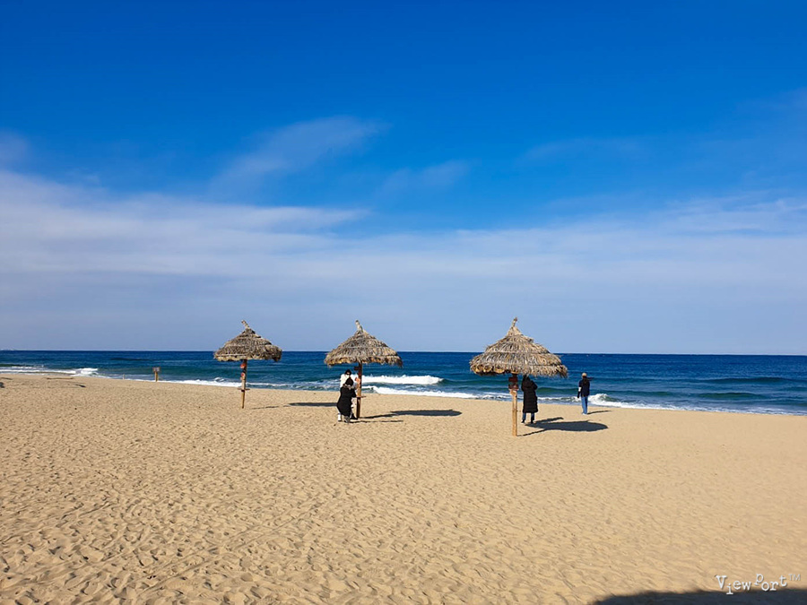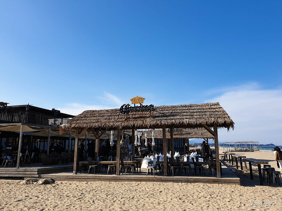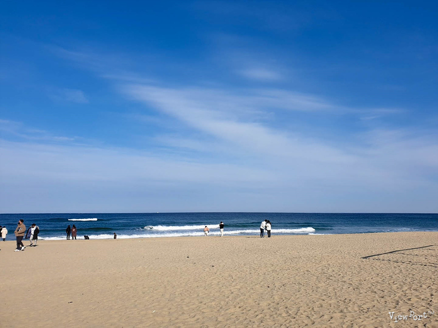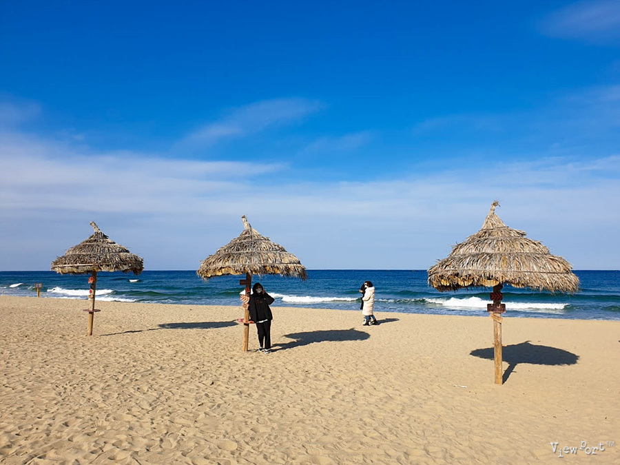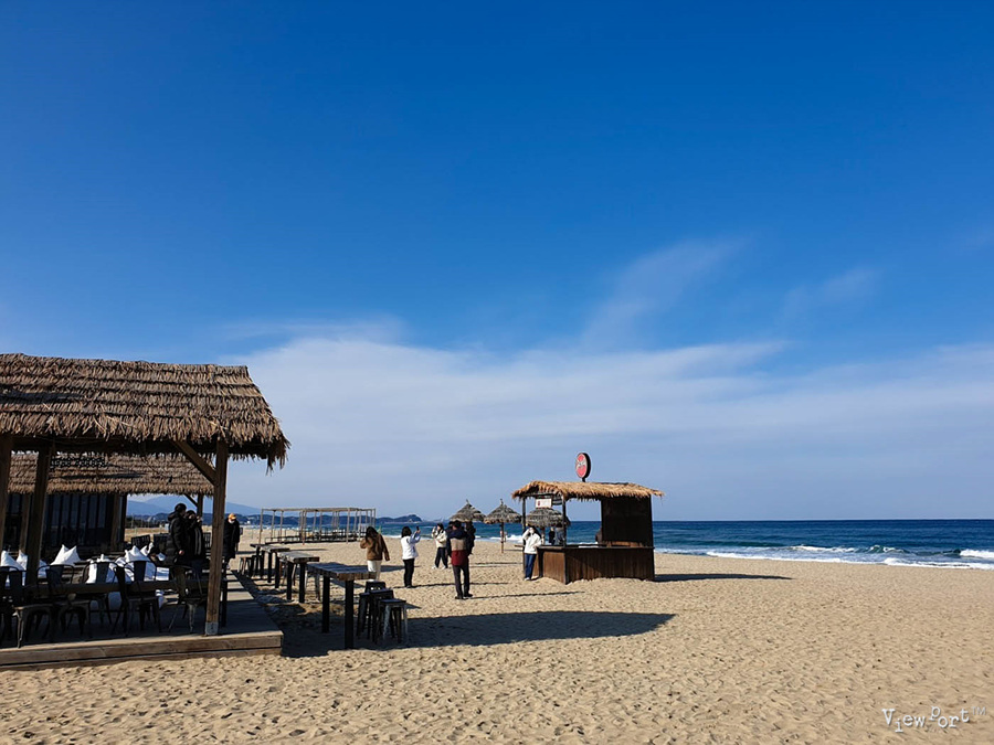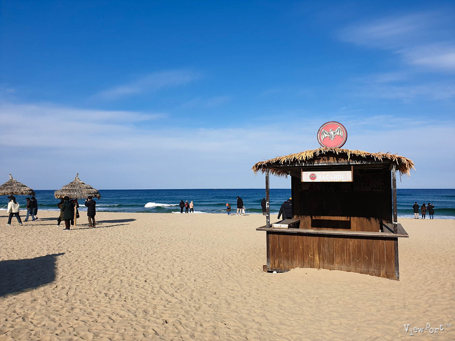 밖으로 나오면 지금은 한적한 매대와 모래사장, 바닷가가 보이는데, 모래가 무척 곱습니다