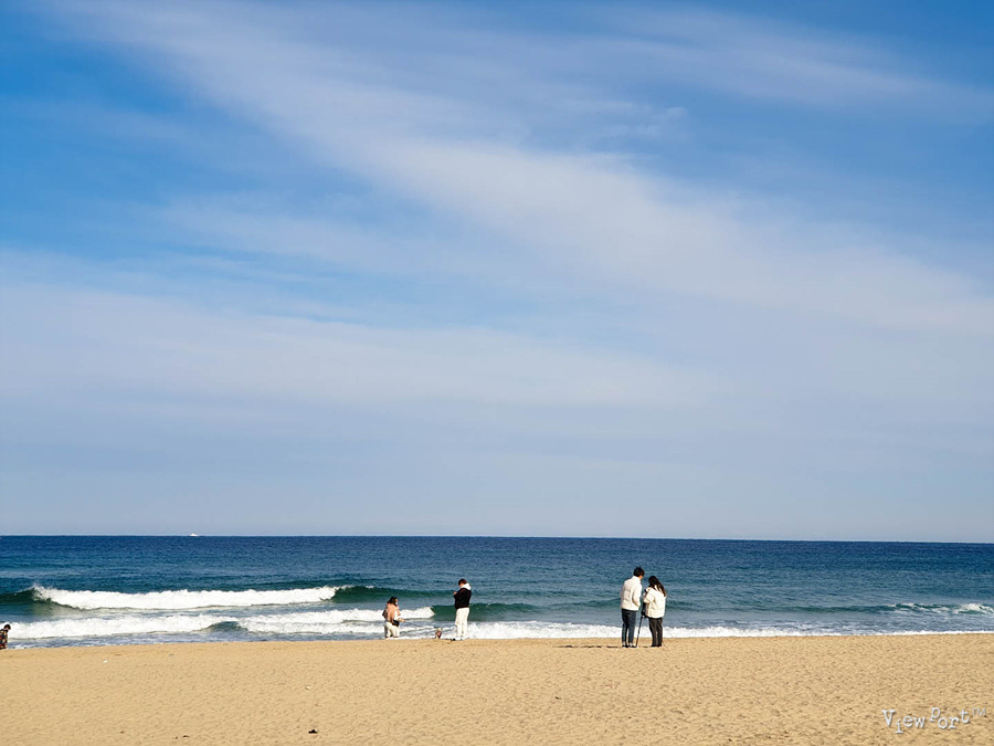 파란 겨울 바다를 배경으로 추억을 남겨 봅니다
