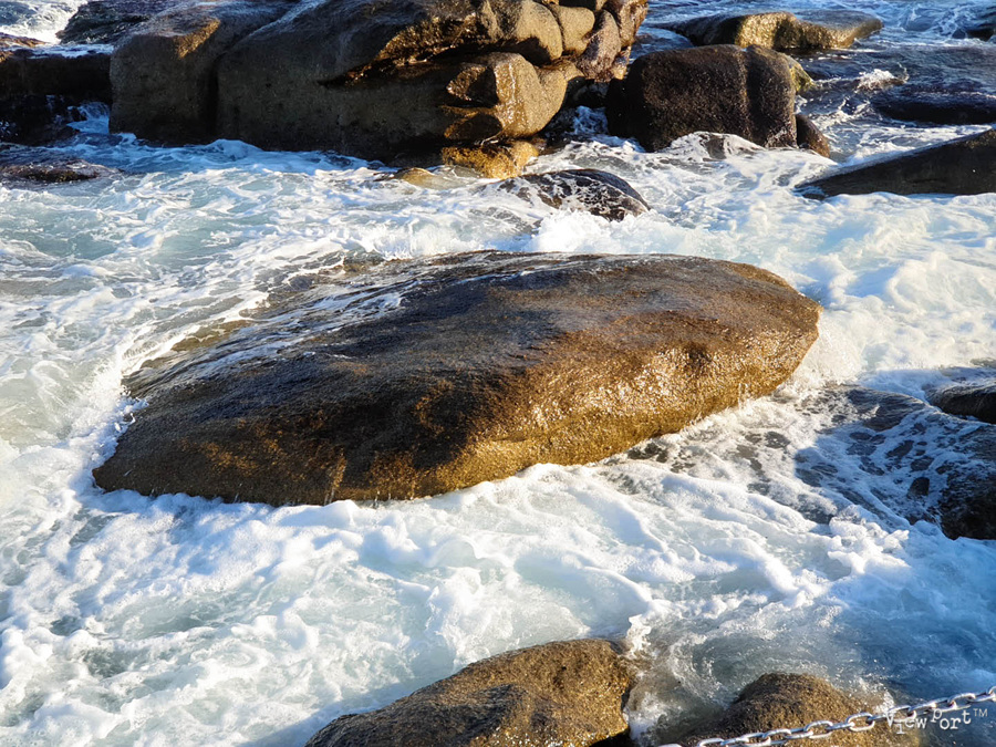 바위가 바닷가 쪽으로 절벽처럼 솟아있는게 아니어서, 파도가 밀려 올 때마다 경계선 안쪽으로 올라오곤 하네요