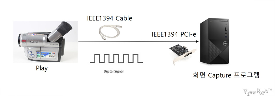 6MM 디지털켐코더의 경우는 이미 디지털신호로 저장되어 있기 때문에 PC에서 받을 수 있는 방법만 있으면 쉽게 동영상 제작이 가능합니다.