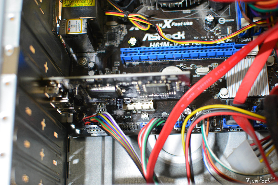 반대쪽은 지금 장착한 IEEE1394카드에 꽂으면 됩니다 (사진은 4핀-6핀 케이블을 연결한 모습입니다)