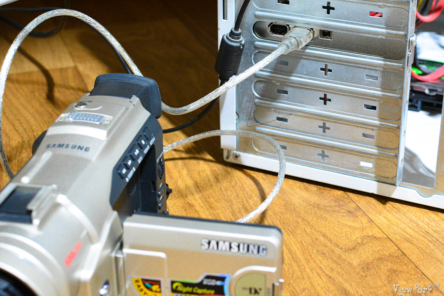 이제 IEEE1394 케이블 한쪽을(4핀) 캠코더 DVi에 연결하고,