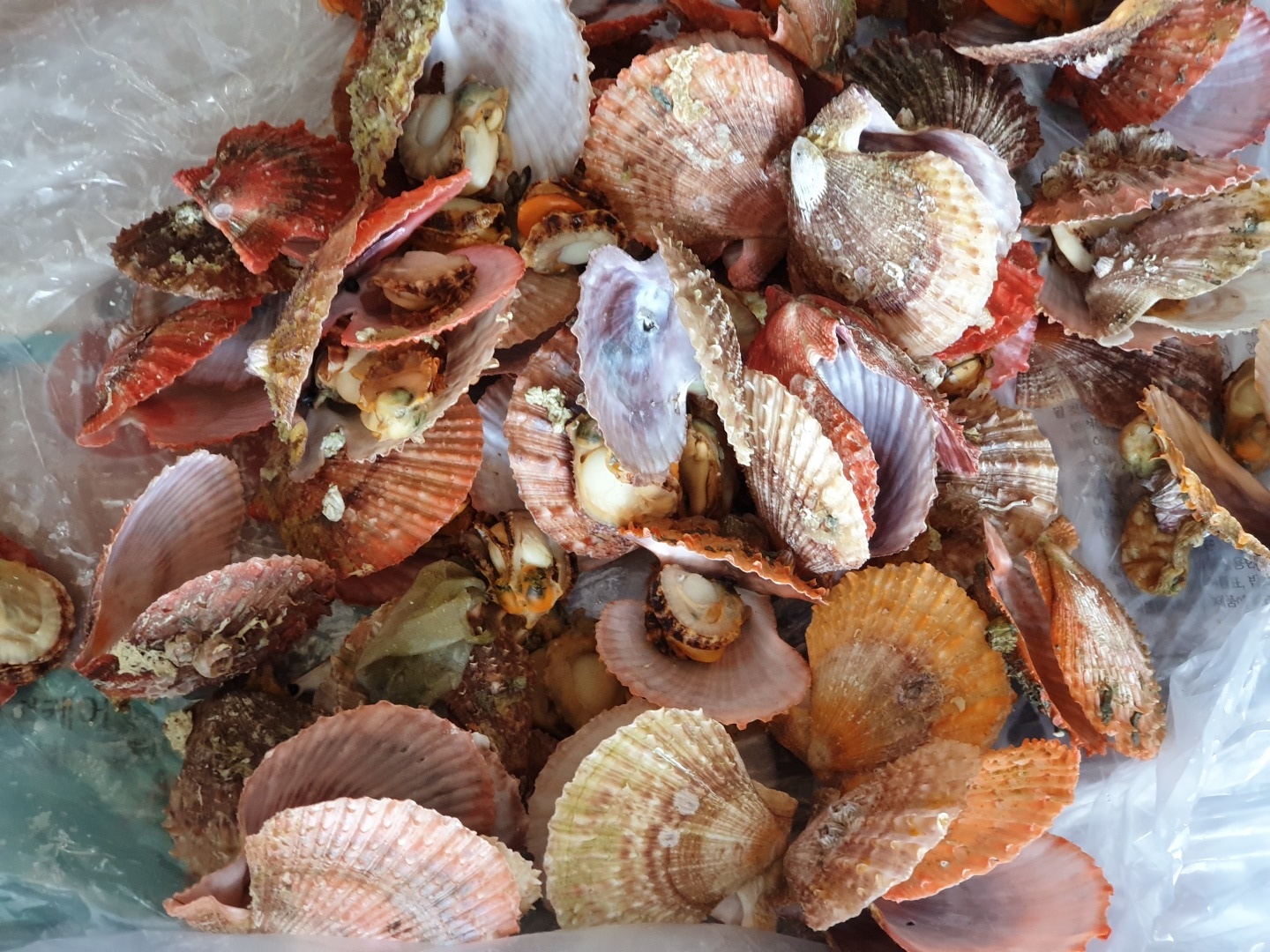 국산 가리비조개도 2만원어치 사서, 킹크랩하고 같이 쪄가기로 했습니다