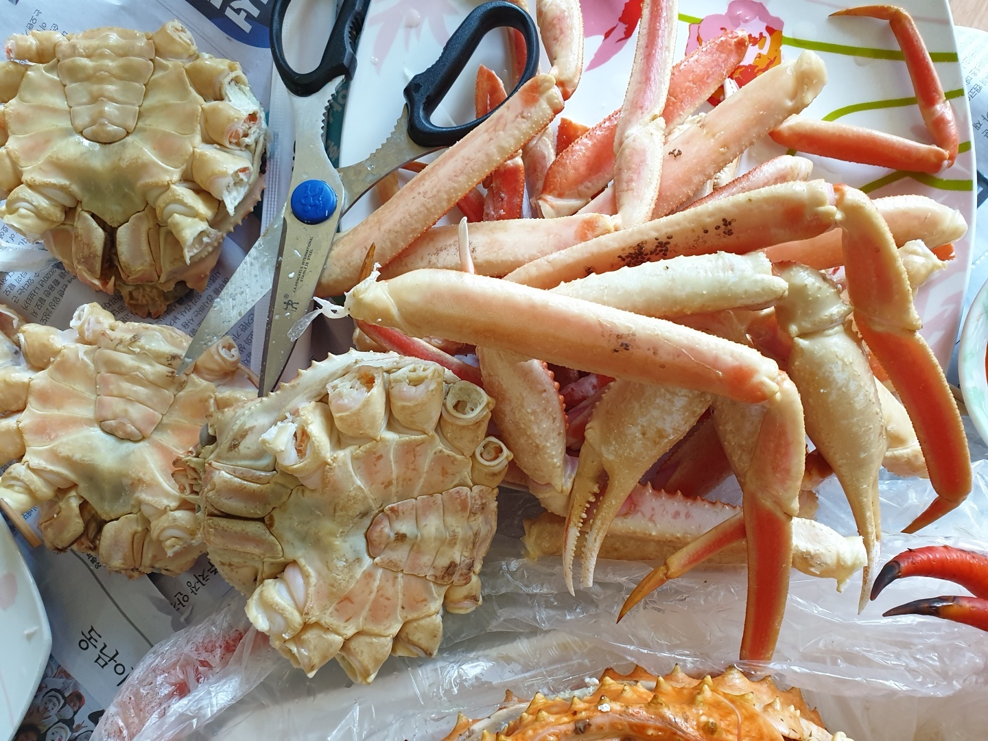 대게 몇마리 더 넣고 해서 가격을 맞추어서 킹크랩을 사고,