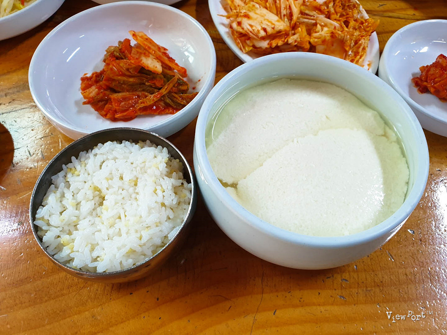 순두부백반은 이렇게 밥한공기와 말콩말콩한 순두부가 간수에 담겨 나옵니다