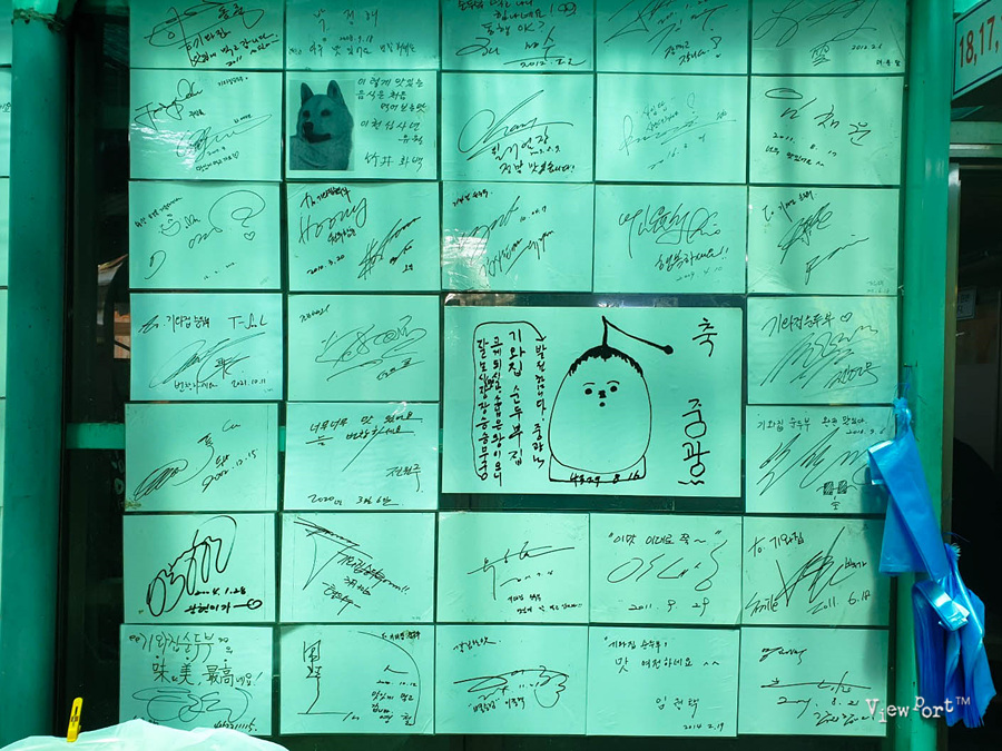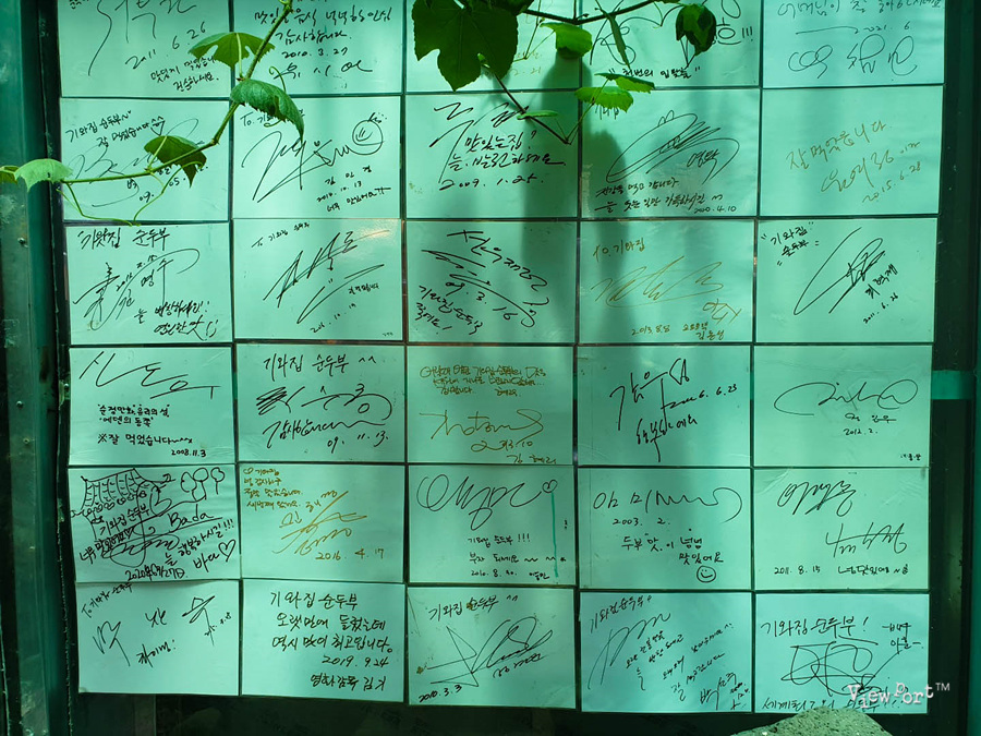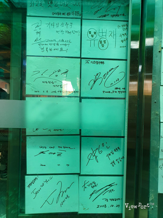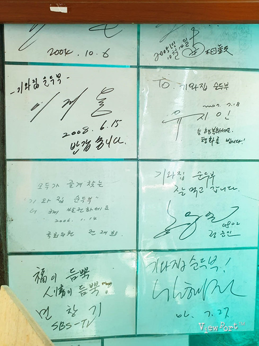 오랫만에 순두부 맛도 보고 계산하고 나오다 보니 입구에 유명인들 사인들이 엄청나게 많이 붙어 있습니다.