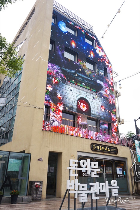지금 마을안내소에는 서울 100년 미디어아트쇼가 진행중인데요. 이렇게 벽면을 스크린으로 삼아 영상을 보여주고 있어요