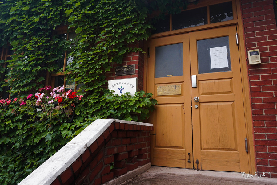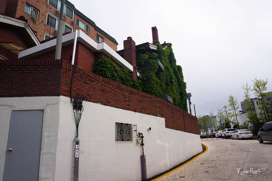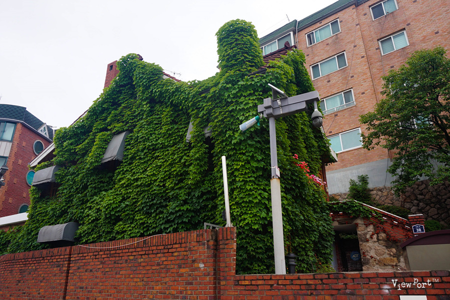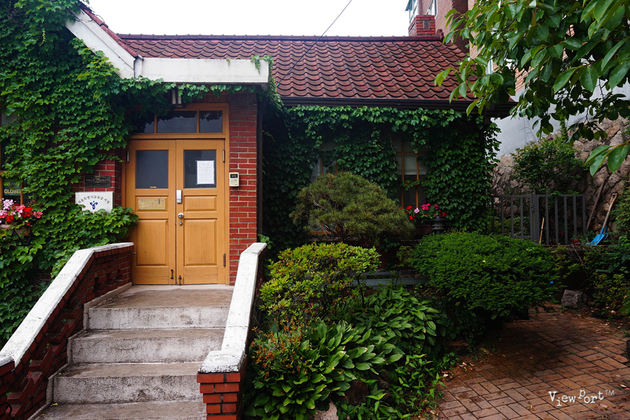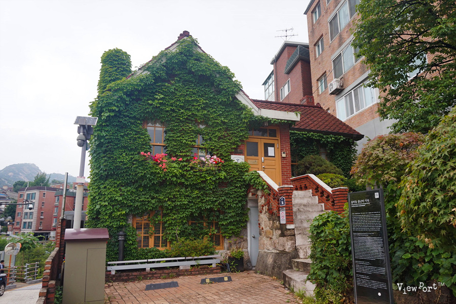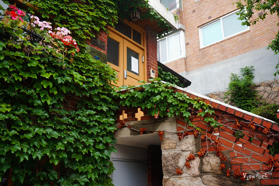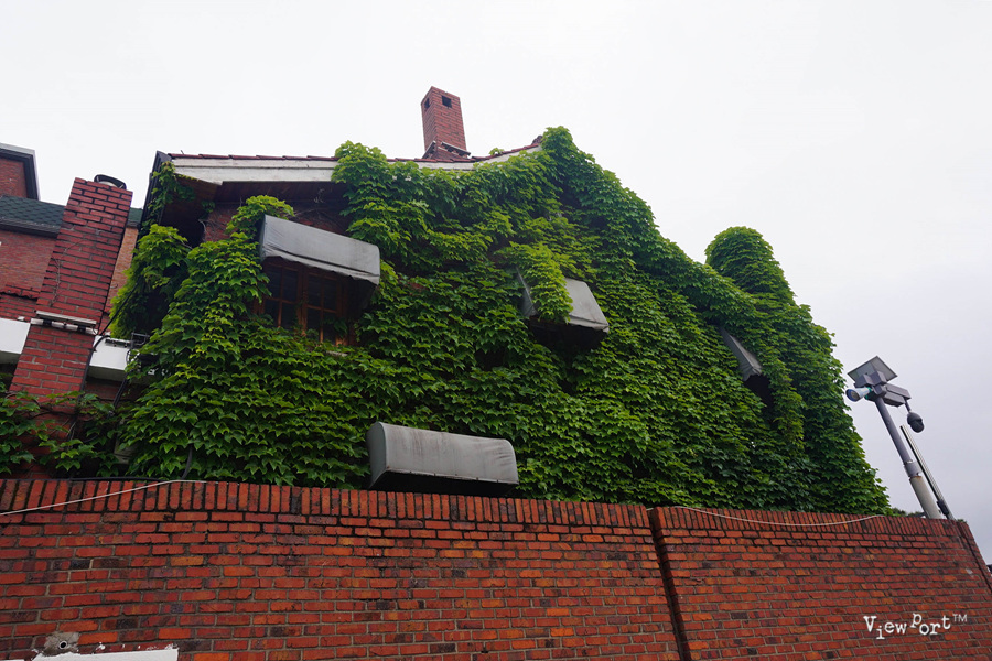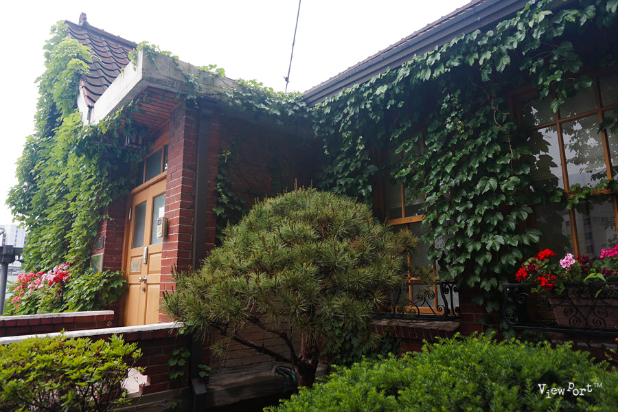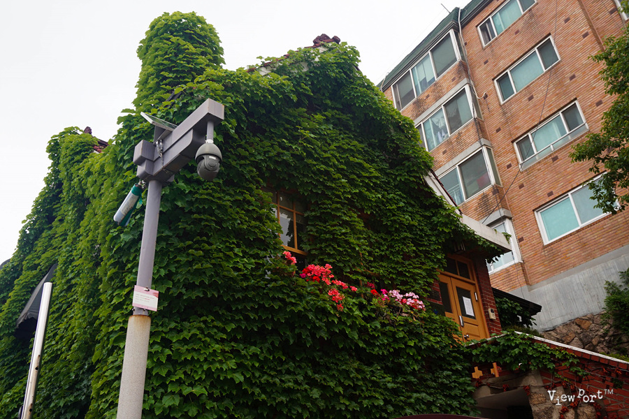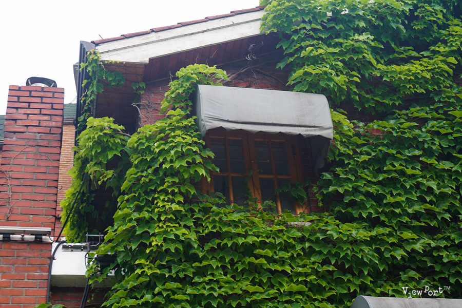 멀리서 보기에도 파란 담쟁이가 온통 집을 둘러싼 모습이 예사롭지 않게 보이네요. 건물의 모습도 앞에 서술한 것 처럼 당시의 스타일을 간직하고 있어, 인근의 주택들과는 다르게 눈에 뜨입니다
