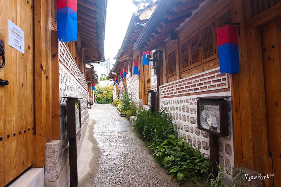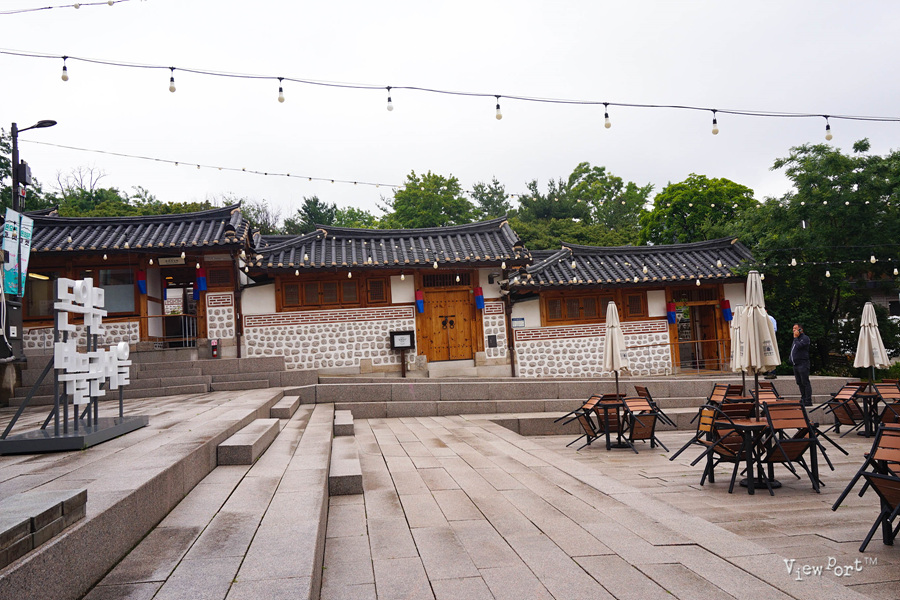 건너편에는 한옥 건물들이 경사로를 따라 계단식으로 지어져 있어요