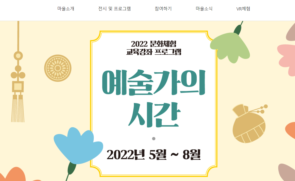 아래 박물관마을 홈페이지에 들어가셔서 예술가의 시간을 클릭하면, 각 체험 프로그램과 운영시간, 예약 방법이 있으니 참고 하세요