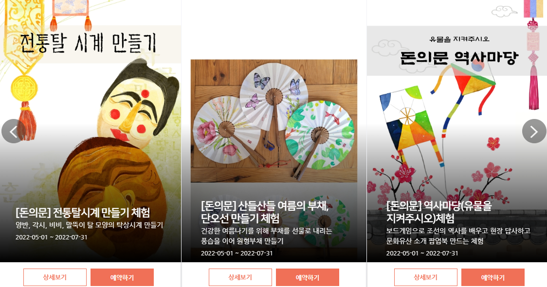 왜냐하면 체험행사는 모두 홈페이지에서 예약제로 운영되고 매주 목요일에서 일요일까지 운영되거든요.