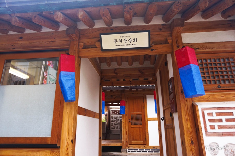 마을 광장 옆에는 한옥들이 줄지어 있는데요, 한옥 체험 용도의 시설과 입주 작가들의 작품을 구매할 수 있는 돈의문 상회가 있습니다