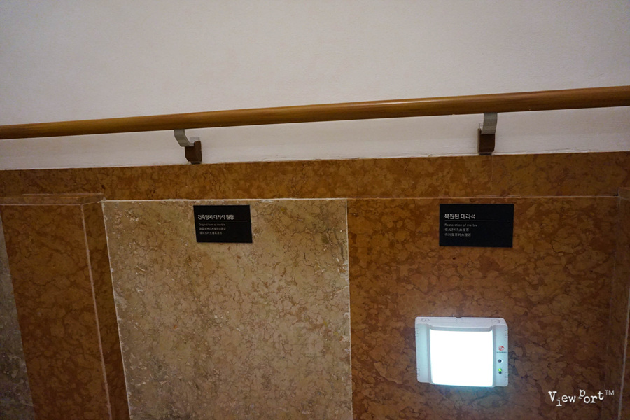 좁은 계단을 따라 2층으로 올라가는 깅에는 당시의 대리석과 복원된 대리석을 나란히 배치시켜서 기존의 모습을 소개해 줍니다