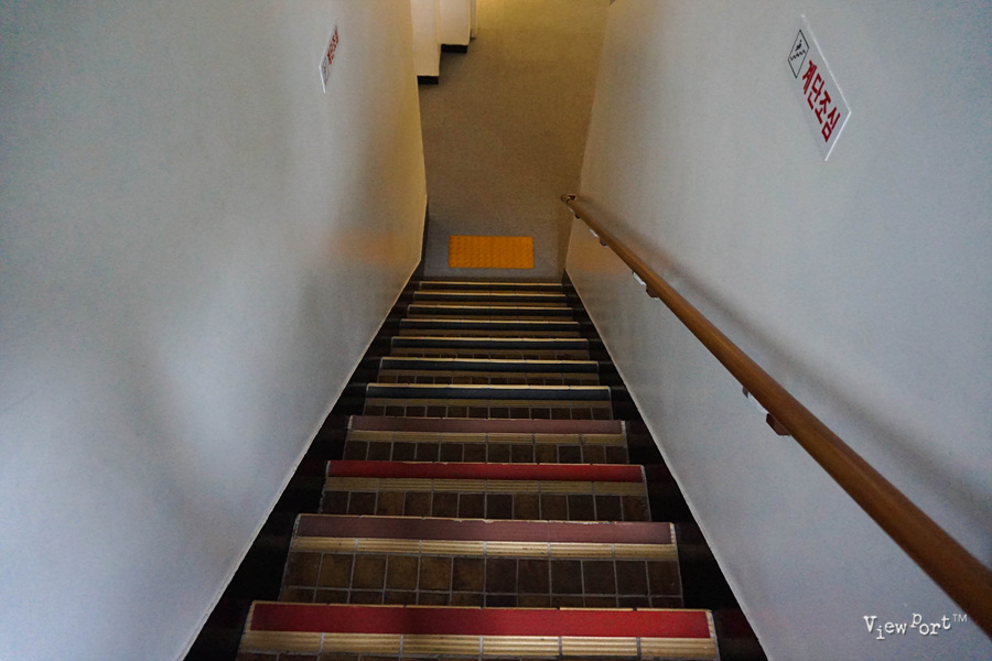 지하로 내려가는 계단은 비교적 폭이 좁습니다.
