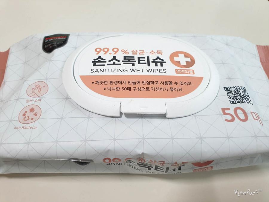 주위에서 쉽게 볼 수 있는 손소독 티슈입니다.