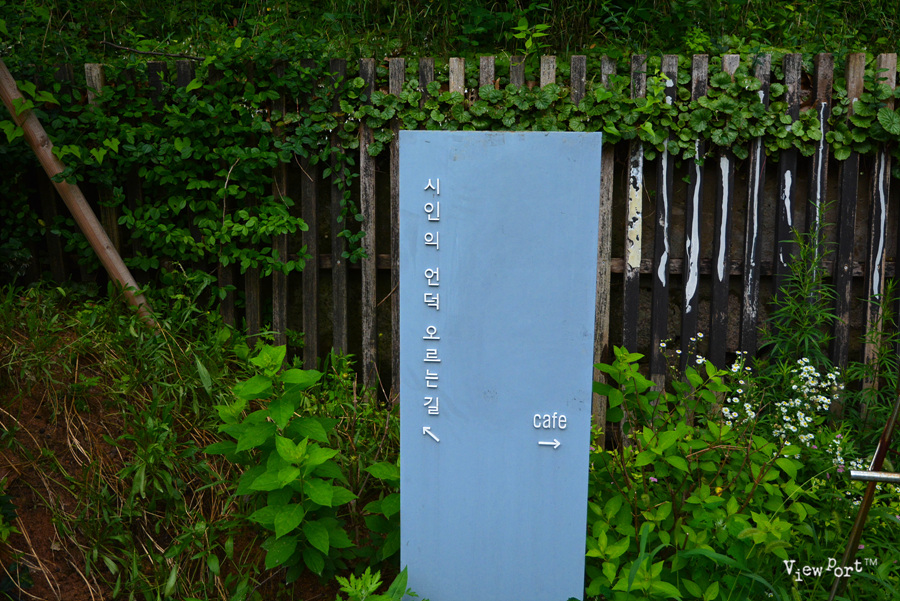 계단을 오르면 이렇게 카페로 가는 방향과 계속 계단을 올라 시인의 언덕으로 가는 길을 알려주는 표지가 있습니다
