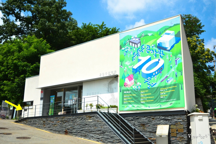 윤동주문학관을 나와 노란 화살표가 있는 계단을 따라 올라갑니다.