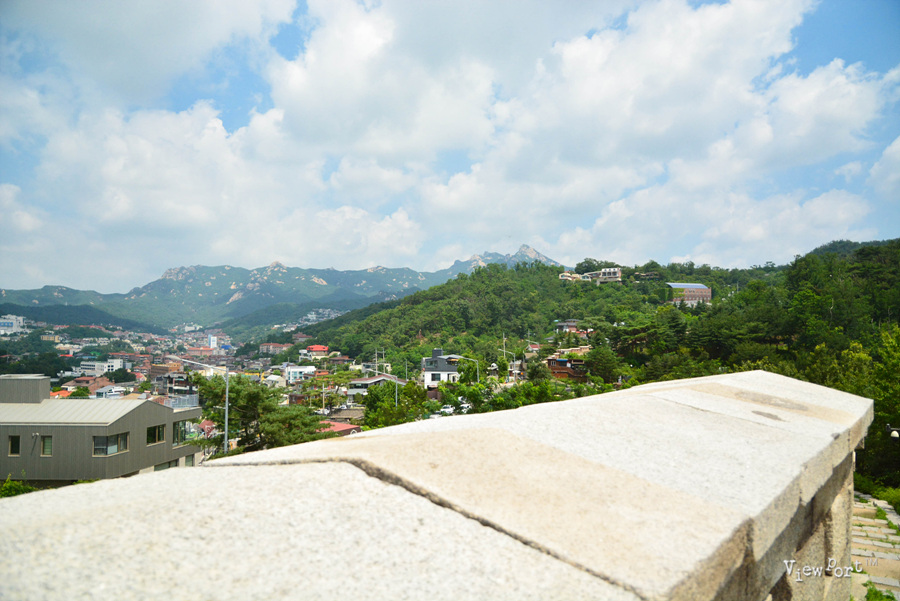 계단 중간쯤 올랐는데도 건너편 북악산(백악산)의 웅장한 모습이 보이기 시작합니다