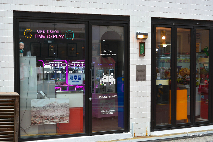 옥인오락실인데 입구의 그림을 보니 예전 오락실 느낌이 듭니다. 에어컨 하나는 빵빵한가 보네요...