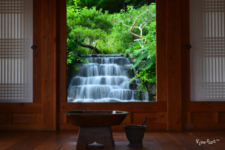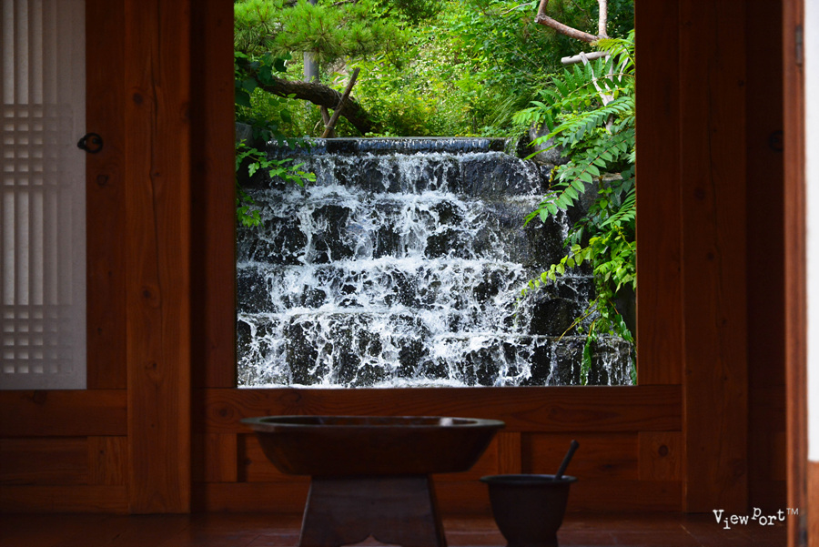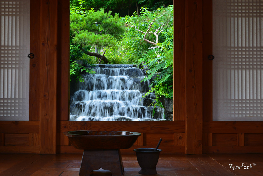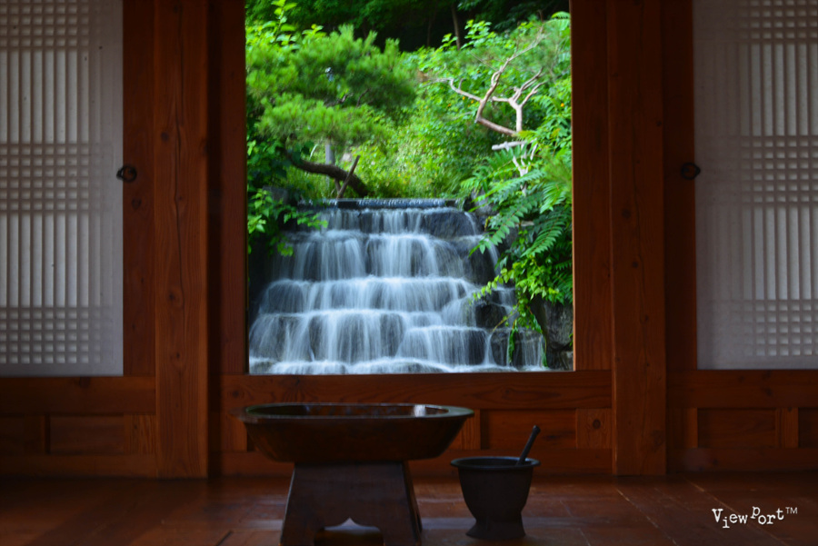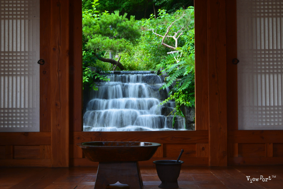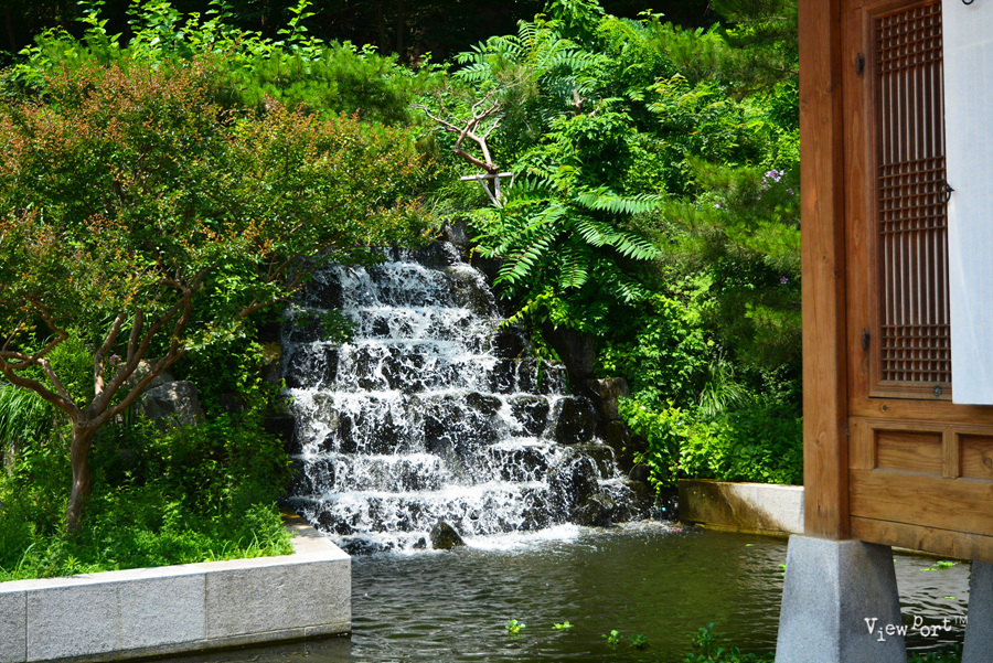 바로 이 사진 한장이 제 눈길을 잡았던 겁니다. 정자 뒤로 작은 폭포를 만들어서 떨어지는 물줄기와 물소리를 보고 들으며 잠시 다른 세상에 와 있는 것 같거든요