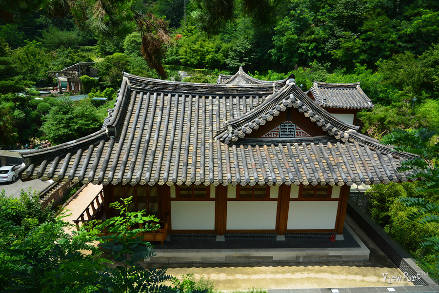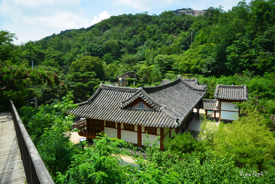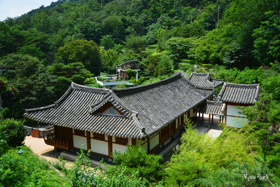 어휴, 이거 전혀 생각도 못한 산 허리에 한옥 건물이 자리잡고 있는게 보입니다.