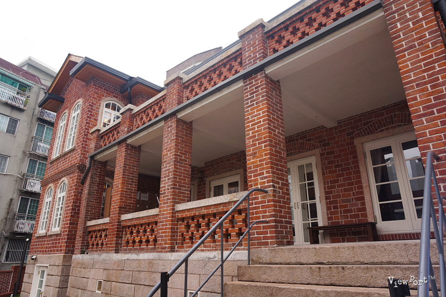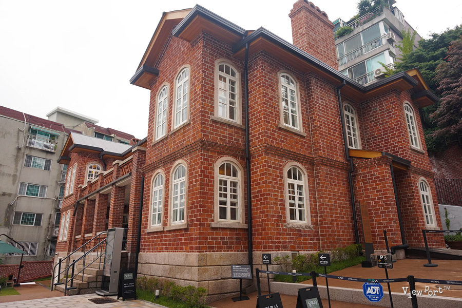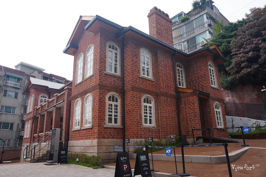 붉은 벽돌로 지어진 2층 건물의 주변을 먼저 둘러보죠.
